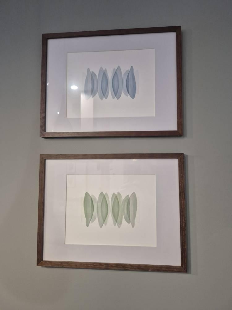 A serene watercolour painting with layered shapes in calming shades of blue. The perfect printable for your tranquil home.