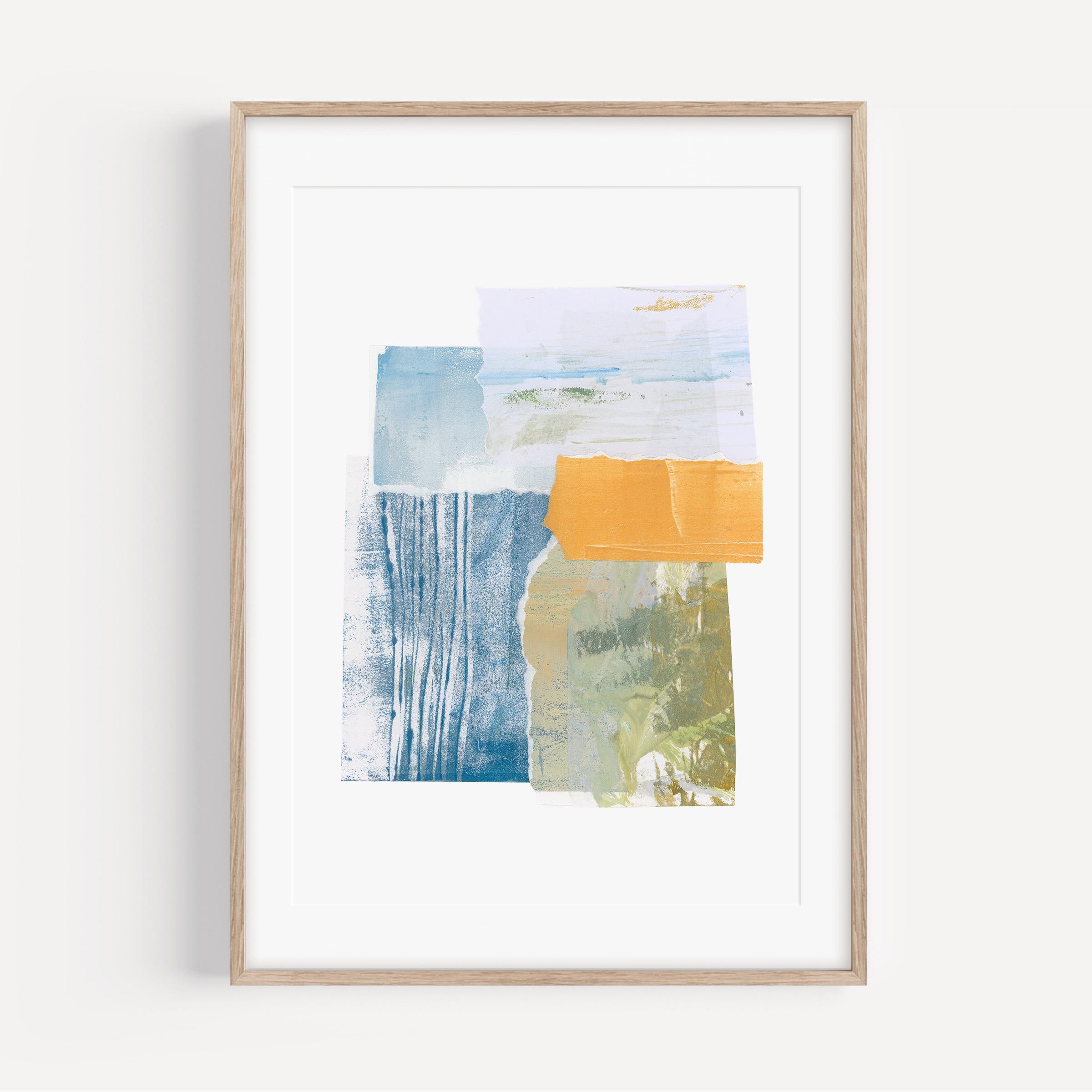 A premium quality Giclee print from my original six-piece coastal collage series. Using hand-textured and painted papers, each work captures the atmospheric light and texture of the coast. This high quality reproduction is printed on archival fine art paper to highlight the visual layers and torn-paper details, offering a modern, high-quality touch for your contemporary coastal interior.