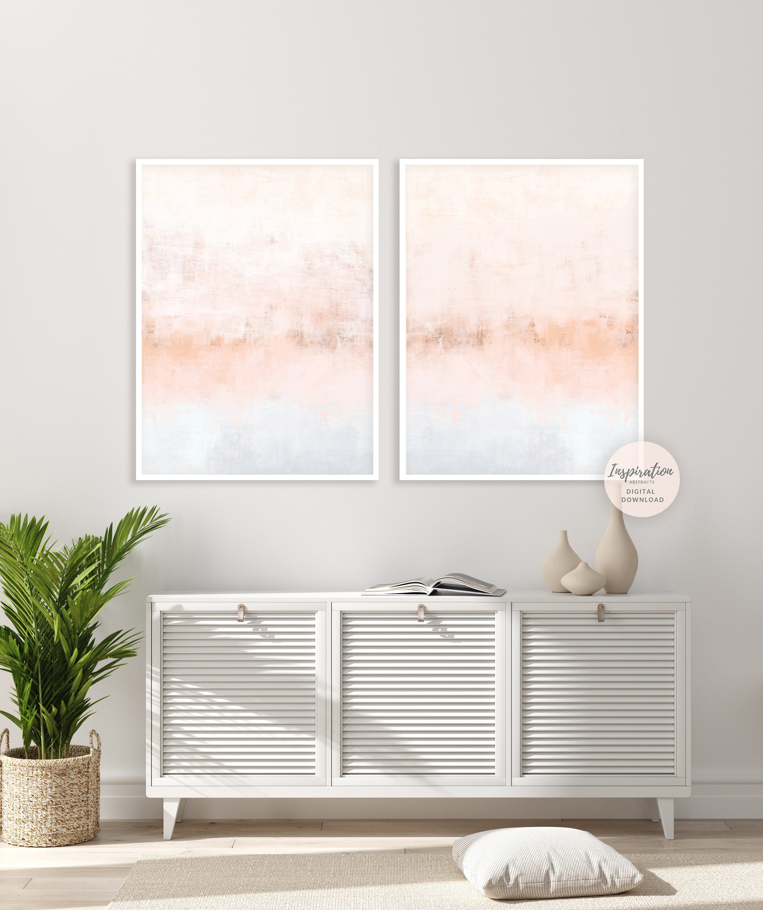 A set of two minimal abstract paintings with soft pink and grey tones. The perfect printable set, for your stylish home.